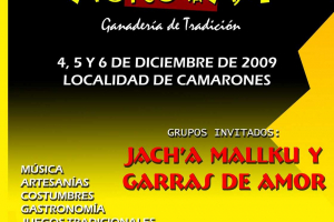 ES LA PRIMERA FERIA Y EXPOSICION GANADERA DE LA COMUNA DE CAMARONES, DONDE SE EXPONDRAN ANIMALES DE RAZA Y HABRÁ ARTESANIA, COSTUMBRES, GASTRONOMIA, JUEGOS TRADICIONALES TAMBIEN MUSICA CON GRUPOS DE TRAYECTORIA COMO: GRUPO GARRAS DE AMOR, JACH'A MALLKU.