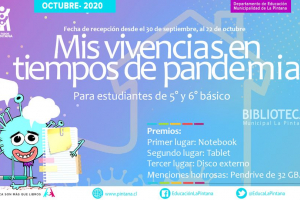 La Biblioteca Municipal organizó durante el mes de octubre el “Concurso Literario Escolar Virtual año 2020. En el concurso participaron estudiantes de 5° y 6° básico de los colegios municipales de la comuna. El concurso consistía en relatar un cuento sobre las vivencias que los niños y...
