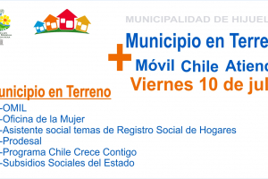 Municipalidad de HijuelasMunicipio en Terreno además de Móvil Chile Atiende, viernes 10 de julio de 09:00 a 13:00 horas en Plaza Segura San Fernán, Ocoa.- Omil- Oficina de la Mujer- Asistente Social, temas de Registro Social de Hogares- Prodesal- Programa Chile Crece Contigo- Subsidios Sociales del...