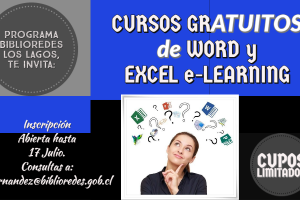Estimados/as, uuarios y usuarias de la Biblioteca Regional de Los lagos;El programa BiblioRedes les ofrece "Cursos Gratuitos" E-Learning en los módulos de Word y Excel, los cuposson limitados y las inscripciones serán hasta el 17 de Julio.la forma de Inscripción es a través del siguiente...