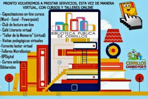 Capacitaciones on-line cursos:Excel Word, PowerponitClub de lectura on-lineCafé literario virtualTaller de la memoria (virtual)Visitas pedagógicas virtualesTalleres de microficción Bp digitalCursos on-line Biblioredes