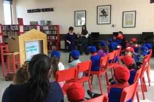 Pequeños de Jardín Infantil Parque Estadio de nuestra comuna participaron de una actividad realizada en la sala de lectura de la biblioteca.