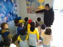 Muy curiosos miran los trabajos creados por el Artista Visual, Manuel Véliz Araya de la Exposición “Magicis Terra Mea”, las 15 obras de gran tamaño (la Mayor de 3X2 mtrs.), los párvulos de Escuela de lenguaje Mateito, opinan y reconocen lugares y situaciones que describen las pinturas. “Yo he estado allí” opina uno al contemplar el cuadro “Volantines en los Peñones”, Antonia exclama “ese toro es malo, persigue a la gente”, al referirse a la magnífica tela “El Diablo estuvo en Tamaya” que representa la leyenda tan conocida en nuestra tierra.