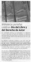 Jueves 21 de abril, a las 11 horas., en la Biblioteca Municipal Rotaria de Playa Ancha, ubicada en Av. Playa Ancha Nº 201 Cuentacuentos y el día 22 del presente se realizara lanzamiento del libro el Despertar de un Sueño" y en esta dos actividades se premiara a los mejores usuarios de la Biblioteca en tres categoría Niño, Joven y adulto.