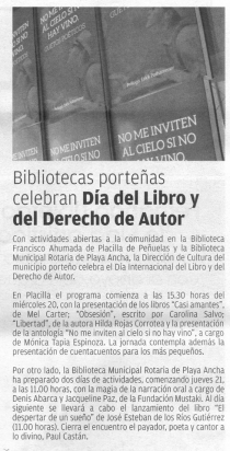 , el próximo viernes 22 de abril, a las 11 hrs., en la Biblioteca...