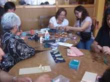 Todos los dias martes un grupo de señoras se reunen en la Sala de lectura de Biblioteca Pública Municipal, para confeccionar coloridos rosarios, que seran entregados a la Parroquia para los niños de catesismo.