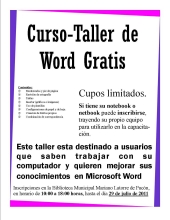 La biblioteca Mariano Latorre de Pucón, realizará talleres de Microsoft Word, durante el mes de agosto.