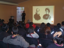 En el marco de la celebración del natalicio número 123 de la poeta Gabriela Mistral, quien nació un 7 de abril de 1889 y además con motivo de la celebración del Día del Libro, el pasado 17 de abril se realizó en biblioteca una charla dirigida a estudiantes de educación media, la charla Gabriela Mistral, el libro y la lectura a través de la biblioteca fue dictada por la bibliotecóloga Srta. Catalina Romero y versó sobre una recopilación y análisis de textos de Gabriela Mistral, sobre todo en prosa, que permiten conformar el pensamiento de la escritora sobre el libro y la lectura y la valoración que ella otorga al libro como medio irreemplazable para el desarrollo cultural.