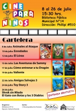 La Biblioteca Pública N° 14 de Puerto Natales en conjunto con el Espacio Cultural Natalis han organizado para estas vacaciones de invierno un ciclo de cine para niños, cuenta cuentos, títeres, dibujo y pintura. Según lo programado por los organizadores la idea es que después de cada película los niños puedan participar de actividades de fomento lector preparadas especialmente para ellos (as), disfrutar de la biblioteca infantil, inscribirse como socio (a), participar de los cuenta cuentos, títeres, dibujar, etc Sin duda estas actividades son un buen panorama para pasar unas entretenidas vacaciones de invierno, además, a los asistentes se les regalará una colación saludable. Todas las actividades se desarrollarán en la biblioteca de Natales a partir de las 15:30 hrs. los días lunes, miércoles y viernes durante el mes de julio y la entrada es gratuita. Esta actividad cuenta con el auspicio de la Ilustre Municipalidad de Natales.