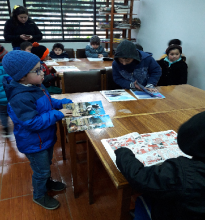 Hoy jueves siete de junio, en nuestras dependencias de la sala de lectura, nos han visitado los pequeños del nivel Heterogéneo, del “Jardín Infantil Poyen Ruka” del Sector de Dollinco, junto a su Educadora Karina Jara Candía y sus tías. Los pequeñitos muy entusiasmados conocieron los servicios de la Biblioteca guiados por la Encargada Sra. Marjorie Carrasco, descubrieron juntos el Rincón Infantil; que cuenta con más de 100 libros infantiles, aprendieron que existen diversos tipos de ejemplares como; los libros gigantes, los acolchaditos, los comics, los libros didácticos, los cuentos cortos y los materiales de enciclopedias como también utilizaron los servicios del programa BiblioRedes, conectándose a Internet y visitando páginas web de videos divertidos, cantaron y bailaron junto a la música desde el computador.