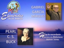 1928 Nace Gabriel García Márquez, escritor colombiano que en 1982 recibió el Premio Nobel de Literatura, artífice del Realismo mágico hispanoamericano con su novela Cien años de soledad. 1973 Fallece Pearl C. S. Buck , escritora estadounidense y Premio Nobel...
