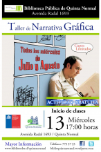 La Biblioteca Pública de Quinta Normal tiene el agrado de invitarlos a ser parte del primer Taller de Narrativa Gráfica que se realizará en nuestro auditorio a partir del día miércoles 13 de julio.