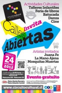 El sábado 24 de noviembre, desde las 15:00 horas, Biblioteca Pública de Quinta Normal participará con un espacio stand en el evento "Calles Abiertas", organizado por Circuito Cultural Santiago Poniente; estaremos ubicados en la explanada de Biblioteca de Santiago, Matucana 151, Entrada liberada....