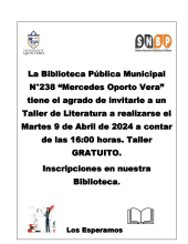 LES ESPERAMOS HOY EN UNA NUEVA JORNADA DE TALLER LITERATURA A CONTAR DE LAS 16 HORAS. ABSOLUTAMENTE GRATUITO. INSCRIPCIONES EN NUESTRA BIBLIOTECA.
