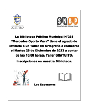 Les saludamos con mucho cariño en esta última semana del año. Que haya sido una gran navidad junto a los suyos. Extendemos la cordial invitación para que nos acompañe en un nuevo taller de ortografía a contar de las 16.00 horas.