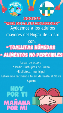 Queremos extender una invitación a todos nuestros usuarios/as. En este mes de la solidaridad ayudemos a los adultos mayores de una noble institución como lo es el Hogar de Cristo. Nuestra biblioteca es uno de los lugares de acopio. Puede traer: Toallitas Húmedas o Alimentos no perecibles. Ayudar es...
