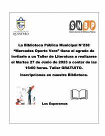 Todos y Todas invitados. Inscripciones en nuestra Biblioteca.Primera Clase : LOS GENEROS LITERARIOS.Taller GRATUITO. Inscripciones en nuestra Biblioteca.