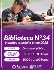 Horarios de verano – enero Biblioteca Pública #34 Eduardo de GeyterDurante enero, ajustamos nuestros horarios para que más familias puedan visitarnos y disfrutar de la biblioteca y la Guaguateca Martes a viernes: 09:00 a 18:00 hrs Sábados: 10:00 a 14:00 hrs...