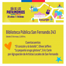 El día 25 de mayo a las 11:00 en el contexto del día del patrimonio, la Agrupación de Artistas Locales de San Fernando están haciendo cuentacuentos, ¡una hermosa actividad para toda la familia!