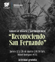 Comienzan los talleres de historia y patrimonio local, en la Biblioteca de San Fernando. Las clases son impartidas por el profesor, Víctor León Donoso los días jueves.