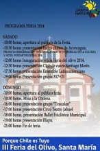 Este año la versión anual de la Feria del Olivo será realizada alrededor de la Iglesia de Santa Filomena. Los días 6 y 7 de septiembre, a partir de las 10.00hrs. puede ser visitada. Podrán apreciar, y, si desea comprar los distintos productos generados en nuestra comuna; productos artesanales de microempresarios, empresas familiares, emprendedores.