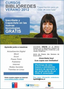 El Programa BiblioRedes, por segundo año consecutivo invita a participar de los llamados "Cursos BiblioRedes Verano 2012" totalmente gratis como es la tónica de este servicio durante los meses de vacaciones, captando, al igual que el verano 2011, nuevos usuarios quienes aprovechan...