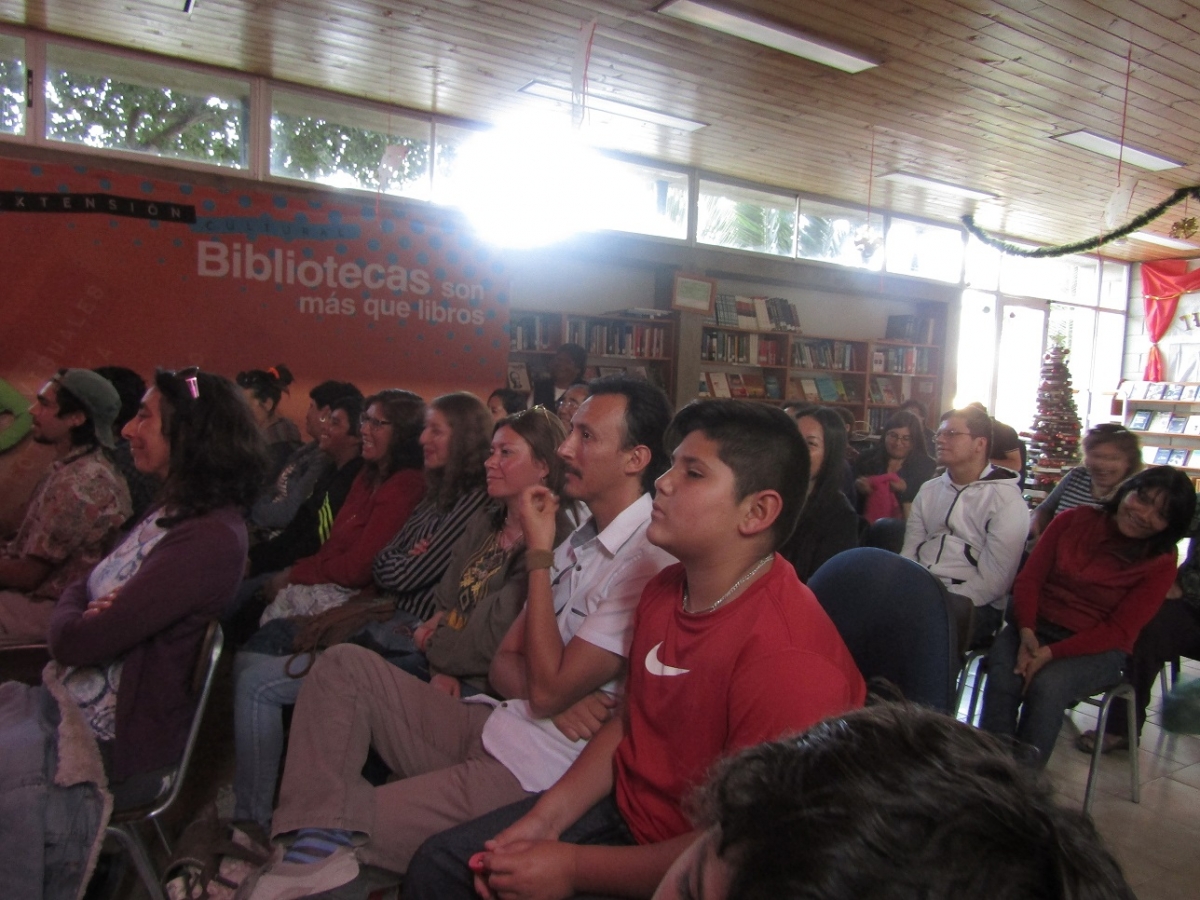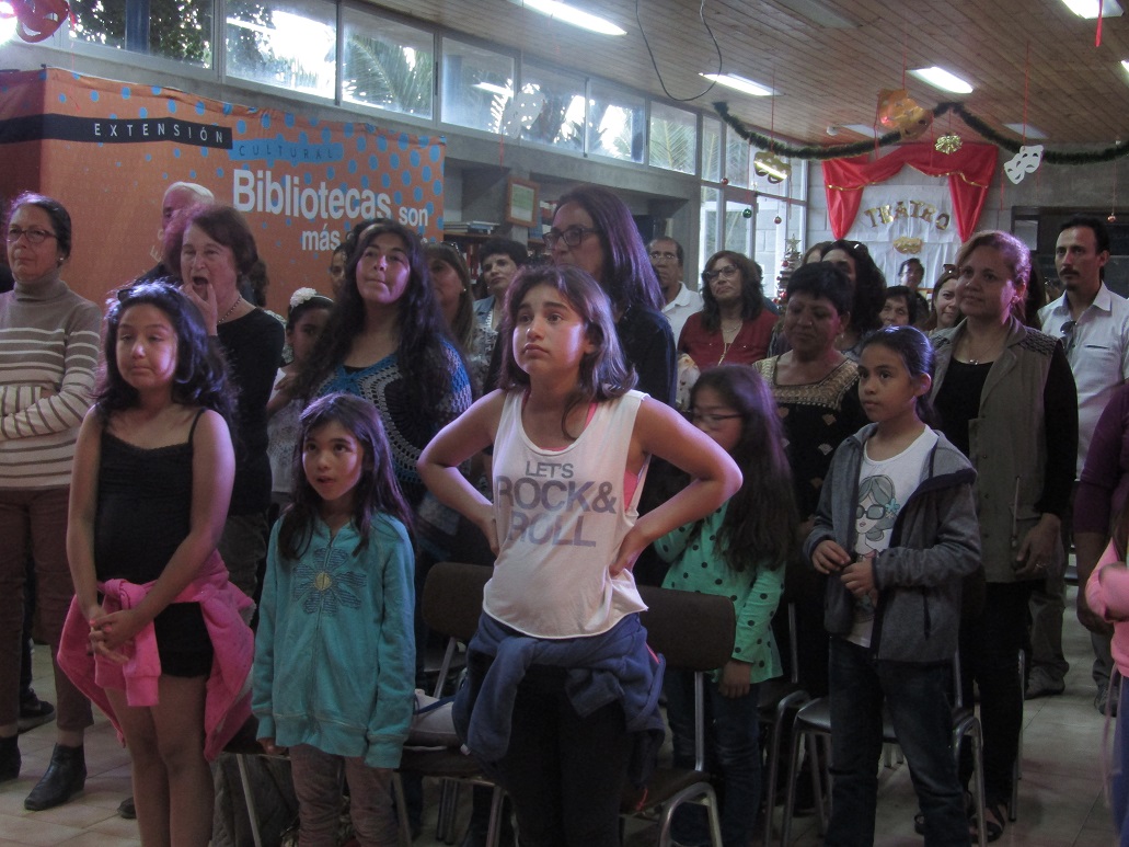 La tercera y última actividad denominada “Teatro + Libros”, se realizó el viernes 15 de Diciembre, consistiendo en un presentación de los clásicos de la literatura, la poesía de Gabriela Mistral y los libros más prestados de la biblioteca se vieron visitados en un ameno y divertido encuentro con el público junto a La dramaturga Lucía de la Maza, quien cuenta con una importante trabajo en el ámbito teatral, juntos a los actores María Bodenhofer y Felipe Contreras, de destacada trayectoria en teatro, cine y televisión