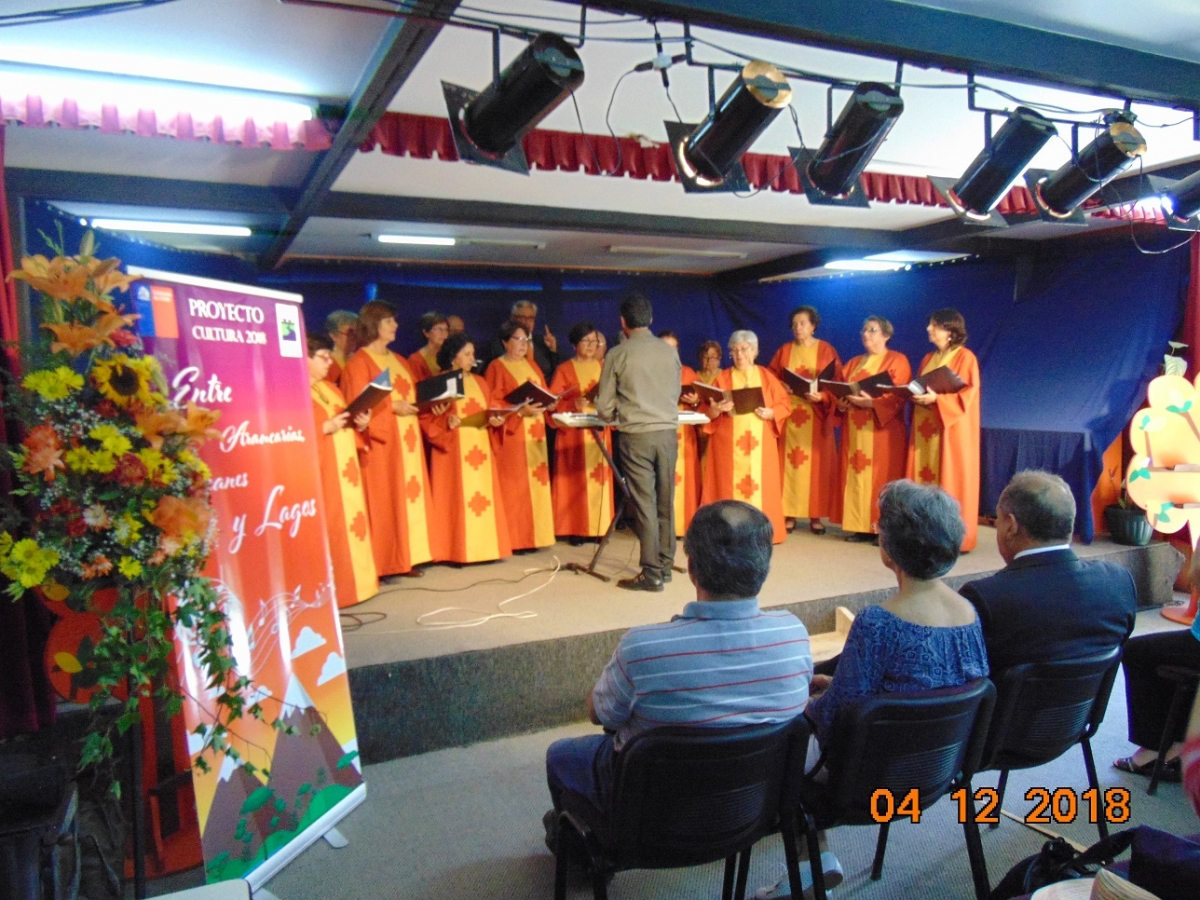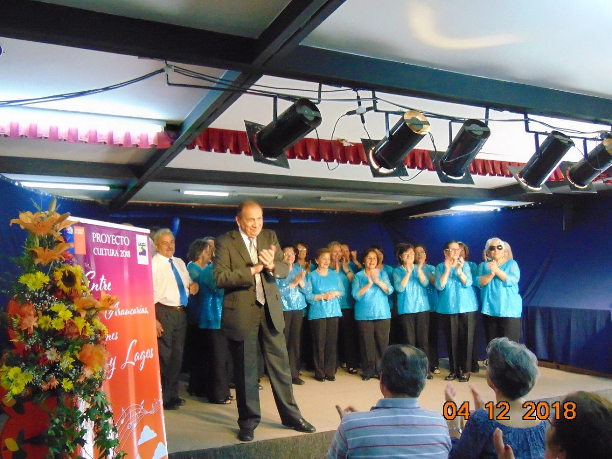 Obedeciendo al desarrollo de un proyecto titulado “Entre Araucarias Volcanes y Lagos”, se presentó el día martes 05 de diciembre un coro de Cañete integrado por 20 personas adultos mayor más su director, quienes nos deleitaron con hermosas canciones, además del coro polifónico de Adultos Mayor de Villarrica quienes se incorporaron a esta presentación.