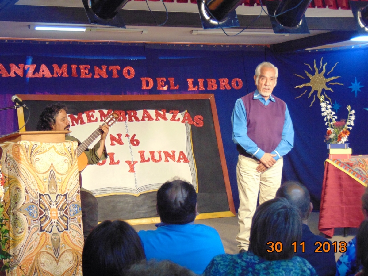 El lanzamiento del libro Remembranzas N°6 “Sol y Luna” se realizó en el salón de la Biblioteca Pública Municipal, dependencia que los ha cobijado ya por cinco años y que trabaja en conjunto con la encargada de Organizaciones Comunitarias Sra. Andrea Mercado, cabe destacar que la ceremonia contó con invitados especiales como, Carlos Grey poeta y dramaturgo de Pucón, Álvaro San Martín poeta y encargado del Museo de Loncoche , quien además presentó el libro y a sus escritores , y don Jorge Yáñez cantautor nacional, quien nos interpretó algunas de sus canciones y entrego sus felicitaciones a los escritores de remembranzas .
